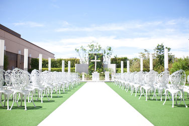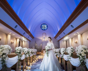 清潔感のある白を基調とした空間にゴールドの装飾がアクセントを添え、ウェディングらしい華やぎも感じていただけます。