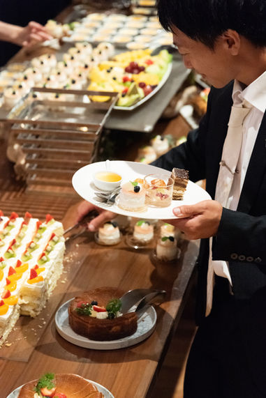 (デザート10種以上〔焼菓子、ムース、ケーキ、マカロン等〕&フルーツ盛り)